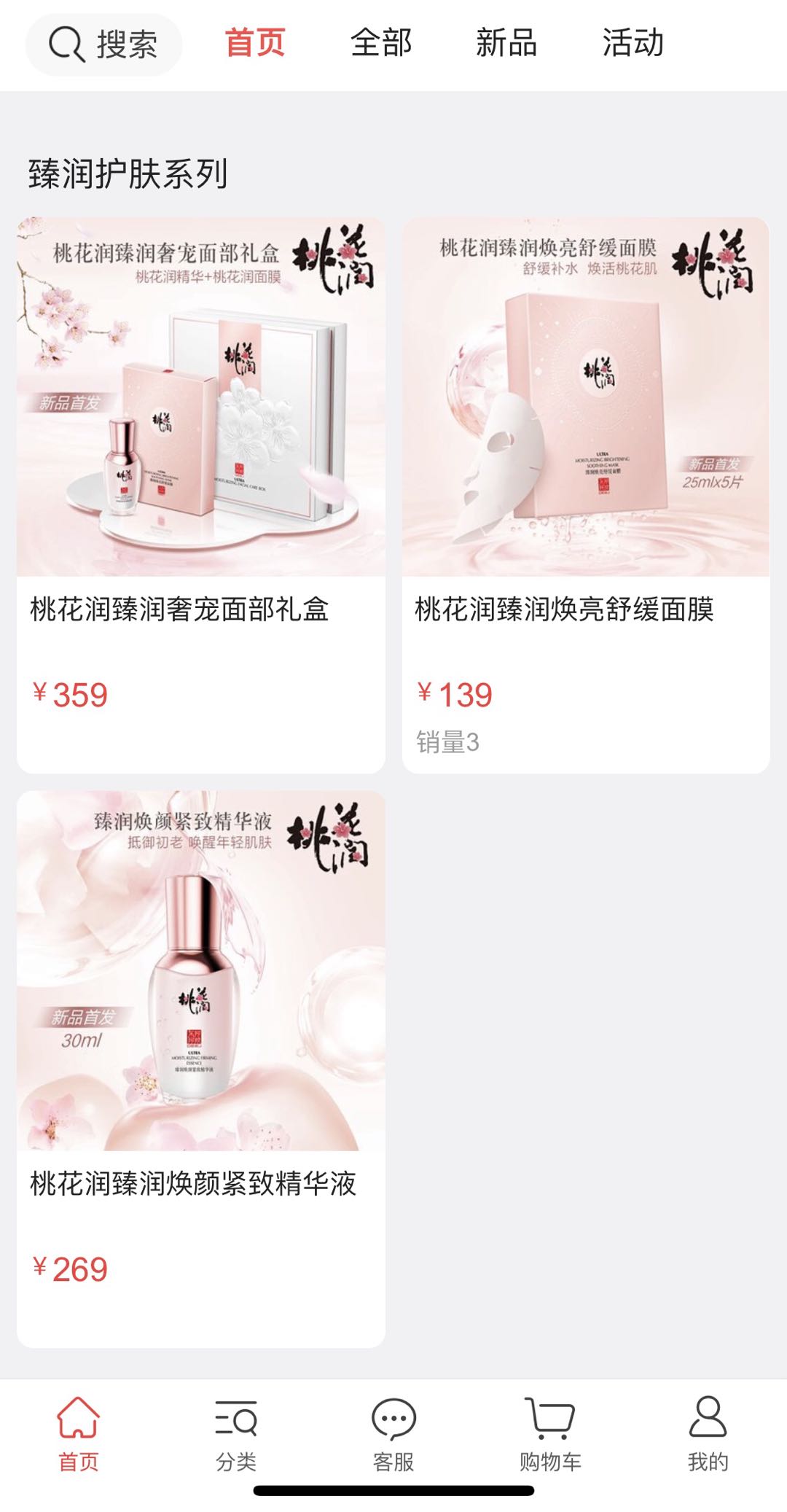 界面时尚在前述微信商城内看到,桃花润仅有面膜、精华两种单品在售,售价分别为139元和269元。此外,两种产品的组合套装“奢华面部礼盒”所售价格为359元。“阿胶胶原蛋白”和“桃花提取物”是该系列主打的核心成分。