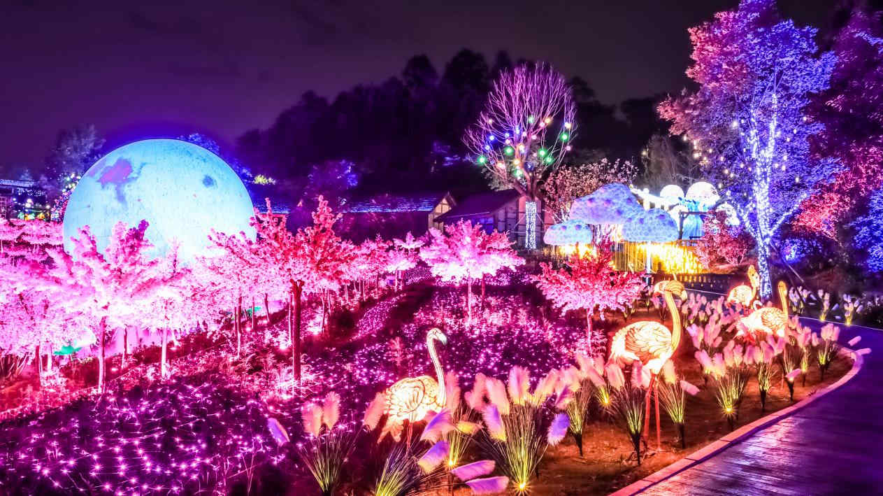 不用担心,欢乐田园打造了一场别样的奇幻灯光秀,许你一场浪漫和唯美的视觉盛宴。