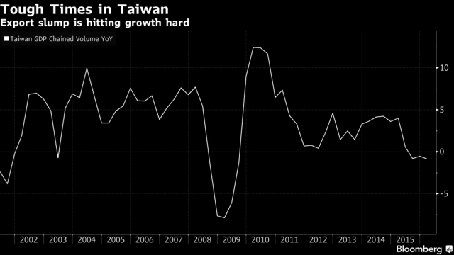 出口持续下滑,中国台湾地区经济连续第三个季度同比萎缩。