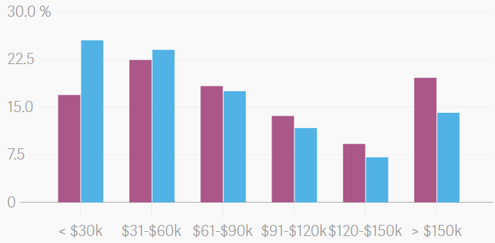 2010年至2014年的调查数据显示,年收入低于3万美元的家庭中,约有25%选择离开都市区;而年收入在12万至15万美元(约合人民币77.81万至97.26万元)的家庭中,选择移居的家庭不到7.5%。分析还发现,经济发展越快的城市,中低收入居民流失的比例越大。在租房成本最高的加州圣何塞市(San Jose)以及马里兰州银泉市(Silver Spring),年收入不超过6万美元(约合人民币38.9万元)的家庭大量选择移居。在圣何塞,在年收入不超过6万美元的家庭中,有高达45%在离开都市区。