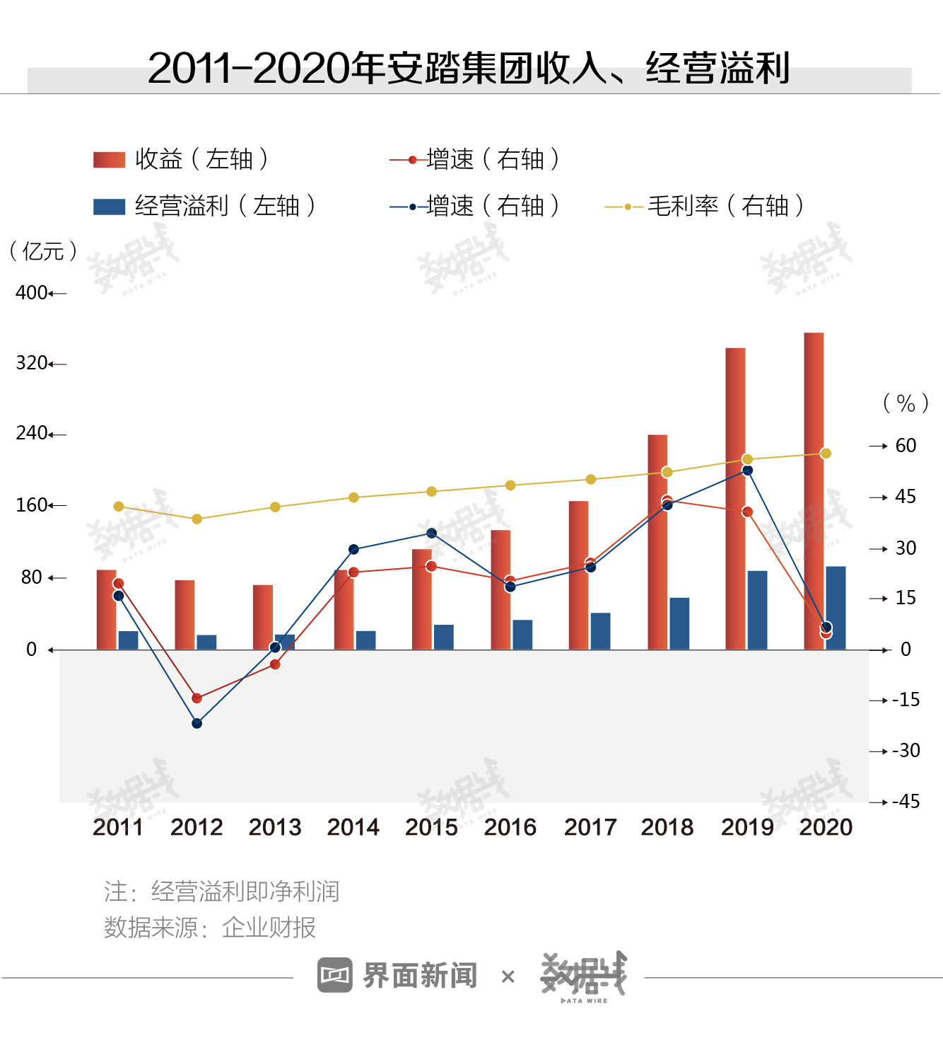 从营收、利润来看,2011年至2020年,安踏集团收入10年间增长近300%,净利润10年间增长355%。从毛利率来看,截至2020年,安踏集团毛利率达58.2%,10年间上涨了15.9个百分点。