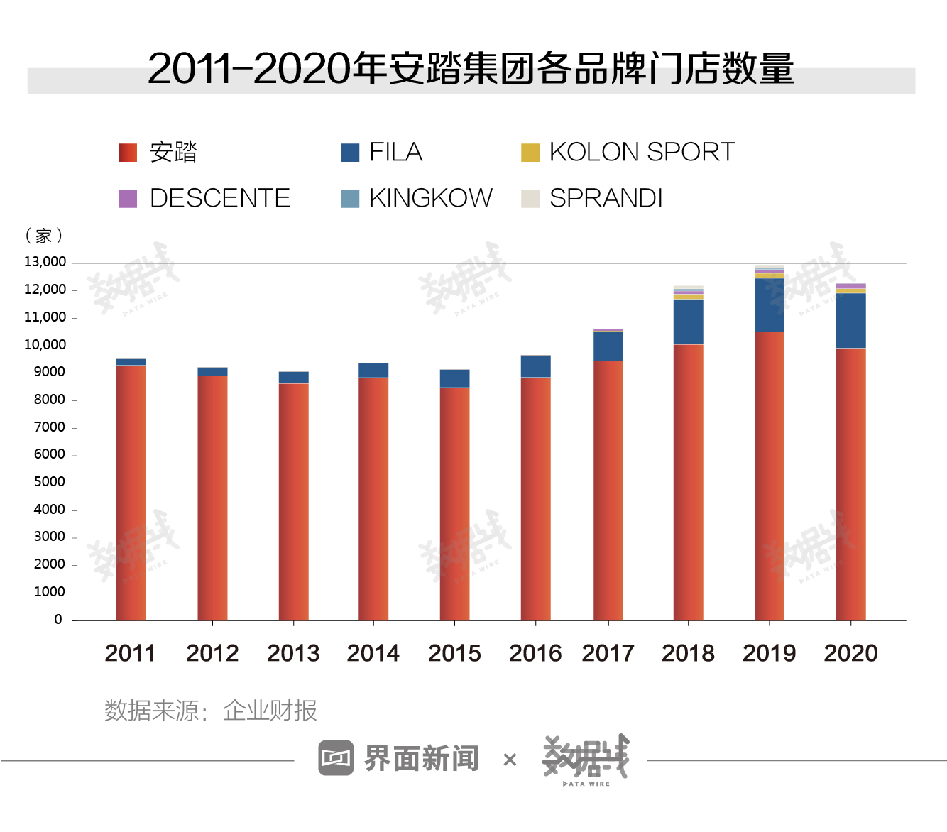 安踏集团对自有品牌很“上心”。从门店数量上看,2011年至2020年,主品牌安踏的门店数量远高于其他品牌。但安踏品牌门店数量扩张速度还是没有收购品牌快,10年间安踏品牌门店数仅增长6.7%。相比之下,FILA门店数10年间增长8倍,DESCENTE门店数5年间增长28倍。