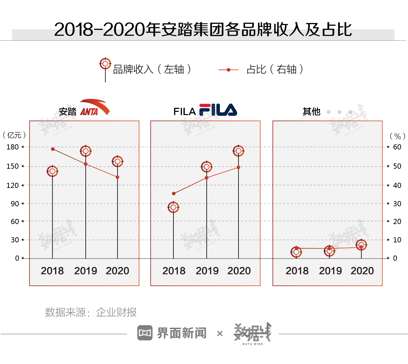 靠买来的“洋品牌”赚钱也不容易。安踏集团收购品牌中,除FILA外,其他品牌收入占比不足一成。