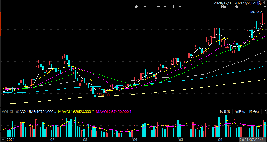 业绩预告披露后次日,昊海生科即收获一个涨停板;到7月2日,其股价从6月25日收盘的167.7元/股涨至236.8元/股,涨幅达41%。此外,今年上半年,昊海生科股价累计涨幅达132.17%。在6月29日异动公告中,该公司称,截止2021年6月29日,公司收盘价为219元/股,最新市盈率为168.68倍,而公司所处的医药制造业最近一个月平均滚动市盈率为40.08倍。