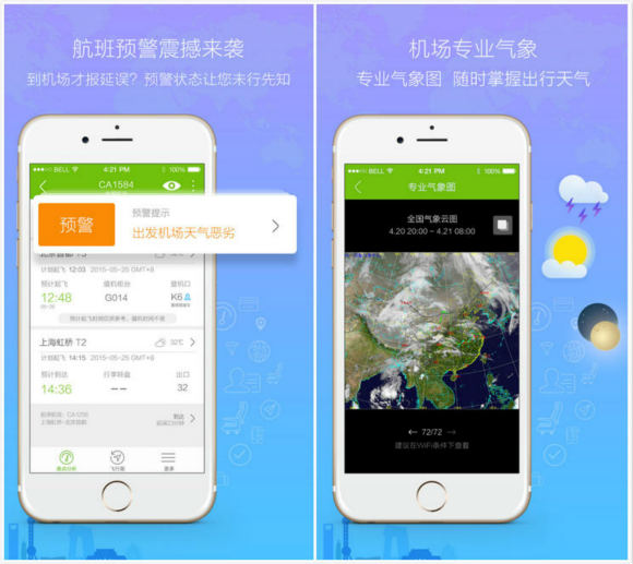 随时查航班信息、航班延误动态预警、自动导入行程、购买机票、机票验真,这些传统功能一应俱全;同时还提供了诸如:历史行程、延误消息更新、机场雷达、机场天气预报、专业气象图……等等这些高大上的功能。