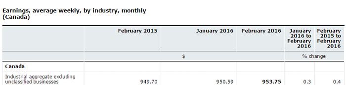 (温哥华乐活网lahoo.ca 乐静报道)加拿大统计局(Statistics Canada)昨日公布了最新的平均周薪数据,2月份加拿大平均周薪为$953.75,同比上升0.4%。其中卑诗省平均周薪为$913.45,在加拿大各省份地区中排名第5,同比上升0.5%。