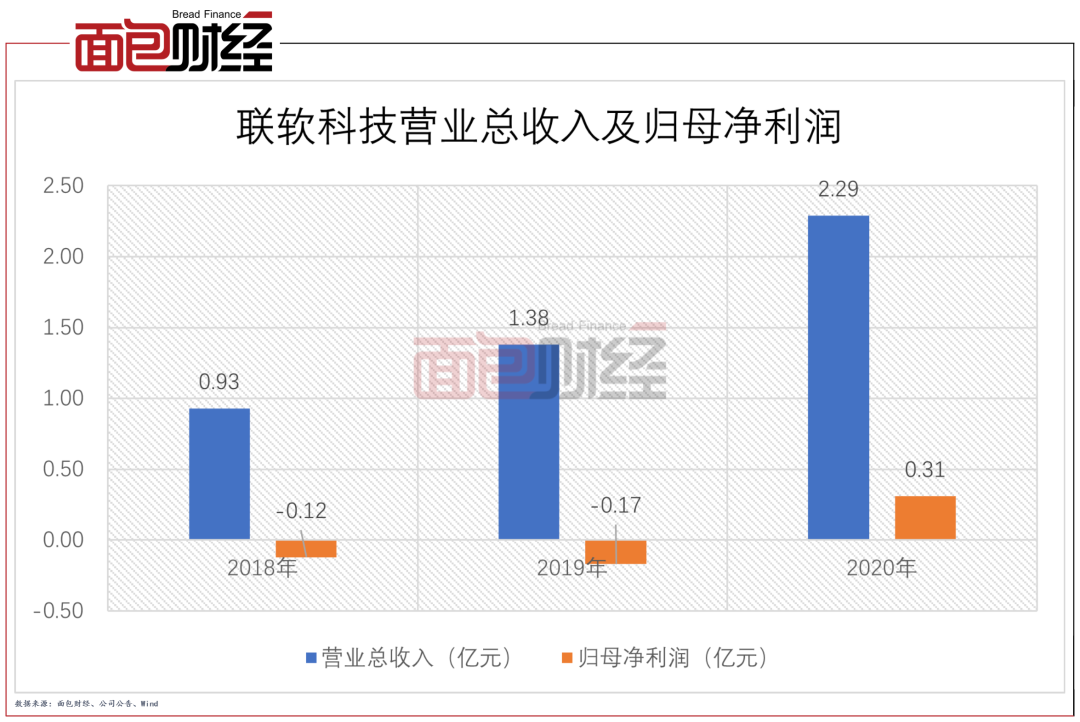 数据显示,近三年联软科技的总营收呈增长趋势,归母净利润也在2020年开始盈利。2020年公司实现营业总收入2.29亿元,同比增长65.61%;实现归母净利润3065.29万元。