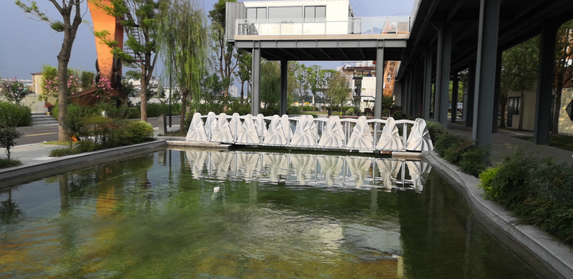上海宝山区新闻办近日刊文介绍,3D打印伸缩桥在宝山区的星空高线公园亮相。据该桥所在园区交运智慧湾科创园人员7月5日向界面新闻介绍,该桥是国内首个运用3D打印技术制造的可伸缩景观人行桥。