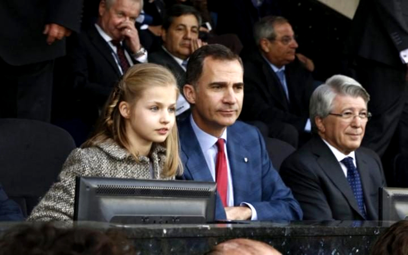 在周中马竞与拜仁的欧冠半决赛首回合较量中,卡尔德隆球场的看台上出现了两位特殊的观众。他们就是西班牙国王费利佩六世及王位的第一顺位继承人——10岁的莱昂诺尔公主。