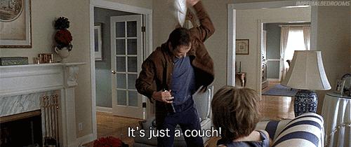 “这他妈只是个沙发!”史派西怒吼,“你却把这些破玩意看的比生活本身更重要!”