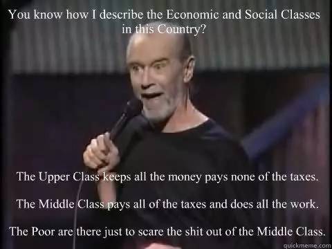 美国讽刺喜剧大师乔治·卡林曾经这样描述美国的阶级群像:高阶坐拥所有财富但不纳税,中产埋头工作缴纳巨额税款,而无产阶级则负责把中产阶级吓出屎来。刚刚积累起财富的中产阶级对重回赤贫沦为无产者充满了恐惧,经济上的身份变化让他们在文化上极度不自信,体现出一种“城不会玩”的状态,追求格调和鄙视大众文化便成为了中产宝宝们安慰自己并与“穷人们”划清界限的条件反射。