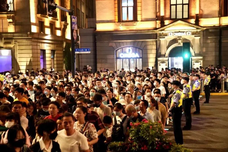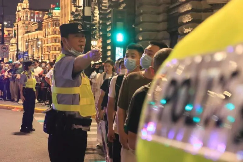 直到当天最后一场光影秀落幕,期间,刘海波的指令随人流变化而快速变换,民警的引导手势和队列也不断转换,但记者在现场看到,外滩区域的秩序始终平稳。