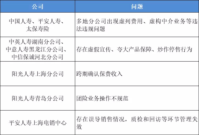 三是市场乱象仍然多发。中国人寿、平安人寿、太保寿险多地分公司出现虚列费用、虚构中介业务等违法违规问题;中英人寿湖南分公司、中意人寿黑龙江分公司、中信保诚河北分公司存在虚假宣传、夸大产品保障、炒作停售行为;阳光人寿上海分公司跨期确认保费收入,青岛分公司团险业务操作不规范;平安人寿上海电销中心存在误导销售情况,质检和回访等环节管理失效。