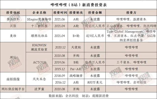 与字节跳动、阿里、腾讯等产业投资不同,B站的投资始终以年轻人为核心,在年轻化的新消费领域,拓展自己的优势。