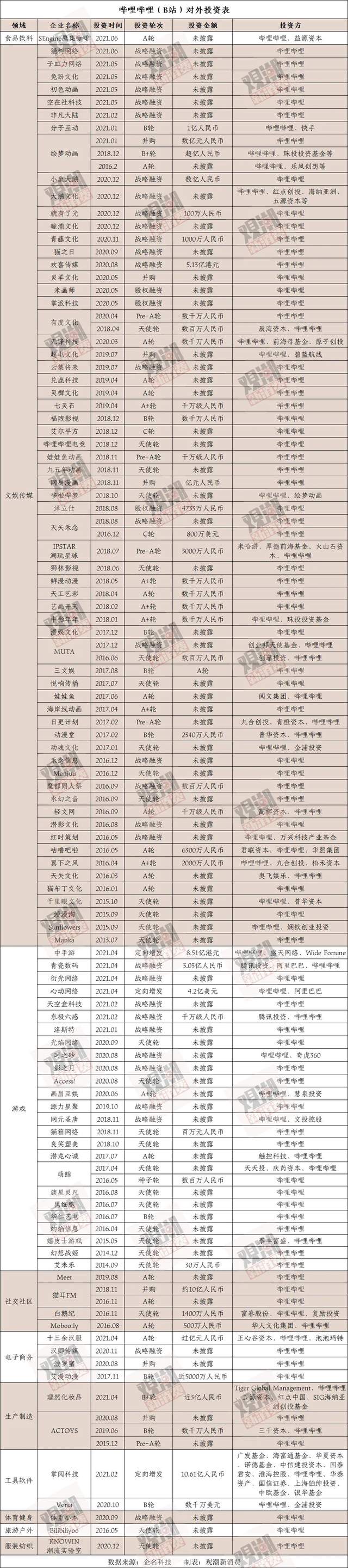 B站的布局是通过投资不断扩大版图。