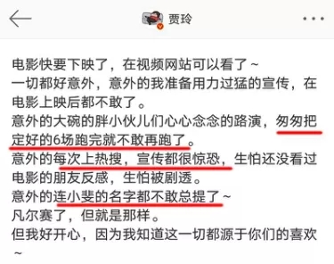 此外,在春节期间疫情小范围爆发的情况下,《你好,李焕英》的路演仍在上映7天后展开。导演贾玲在个人微博表示,每次路演都上热搜,怕没看过电影的朋友被剧透犯感。所以“匆匆把定好的6场跑完就不跑了。”而2月21日,路演收官前一天,《你好,李焕英》以40.25亿票房,反超40.24亿《唐人街探案3》。