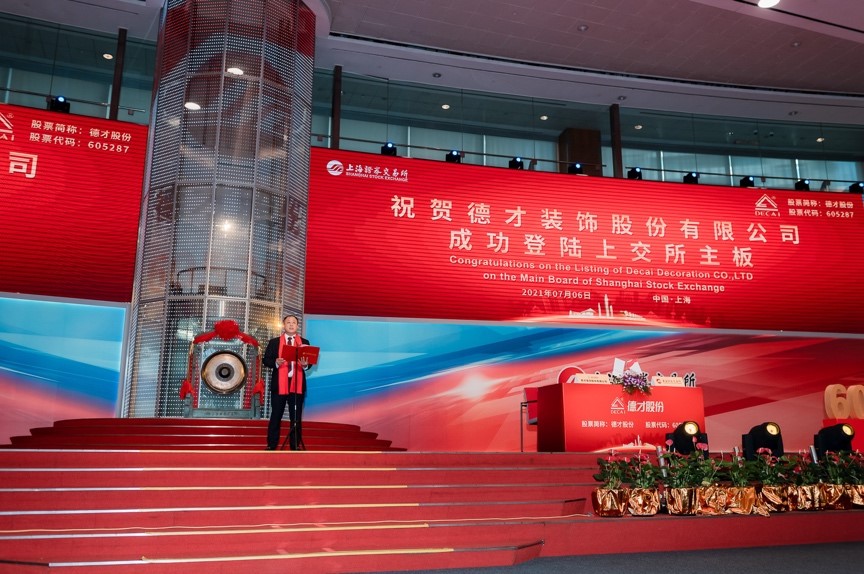 2021年7月6日,德才装饰股份有限公司(股票简称:德才股份,股票代码:605287)在上海证券交易所隆重举行首次公开发行A股上市仪式,成功登陆资本市场,成为山东省第一家在国内A股上市的建筑业企业。这是德才股份发展史上的重要里程碑,也是全体德才人的光荣和梦想。