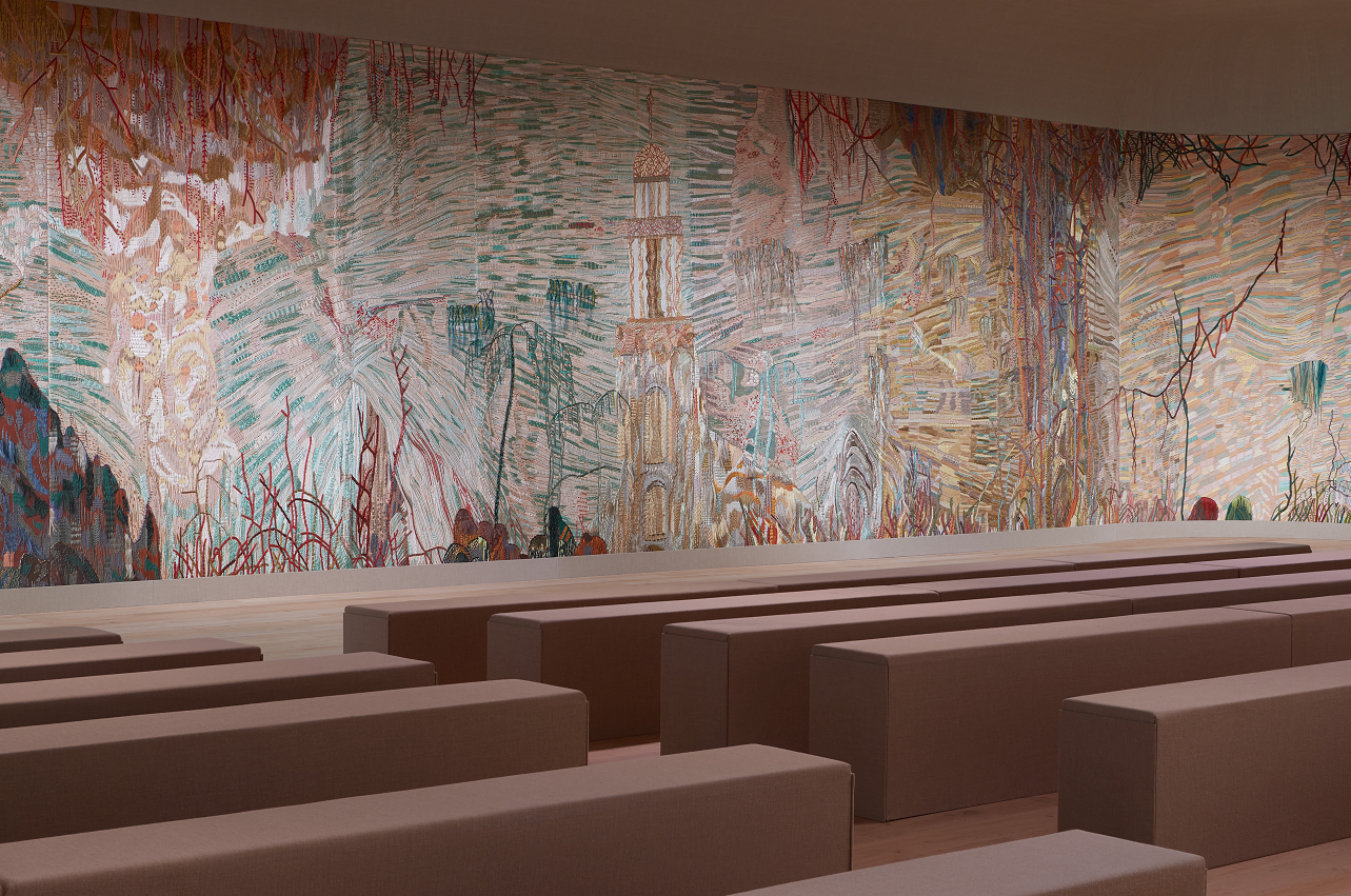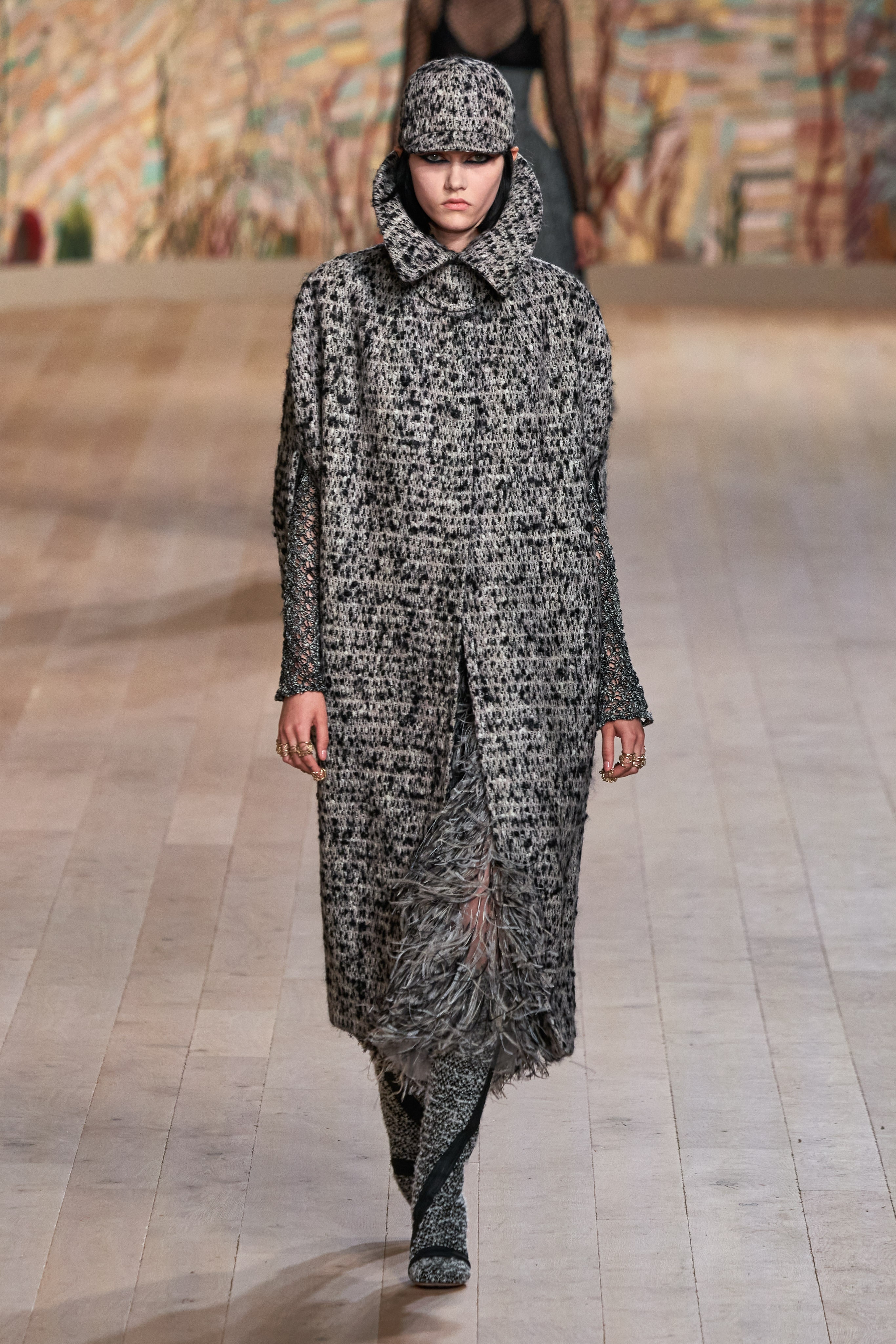 法国艺术家伊娃•若斯潘的作品《丝之室》于本系列发布秀惊艳亮相。秀场墙面上栩栩如生的刺绣图案,令人联想到罗马科隆纳宫中以印度为灵感的“刺绣之 厅”。