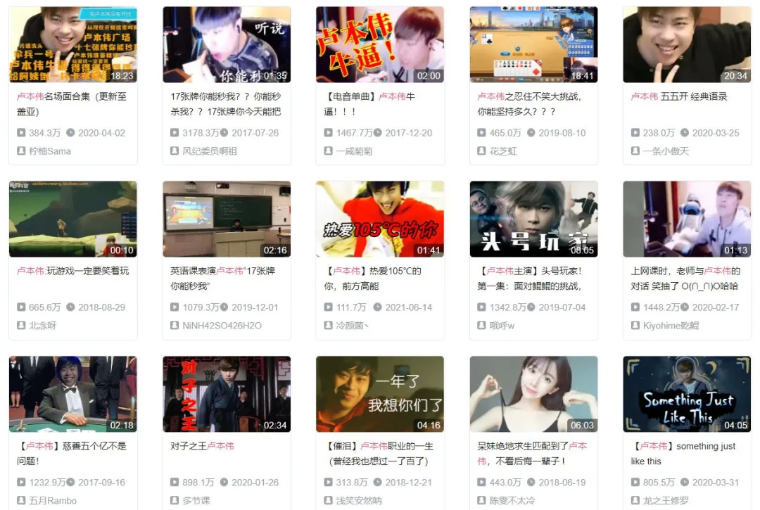 不仅如此,当主播的认知度已经达到一定程度之后,哪怕是已经不直播了,仍然能在视频平台延续热度。比如在2018年初已经被封禁的卢本伟,如今仍然是B站顶流。根据网易数读去年年底的统计,在B站的“鬼畜全明星”中,卢本伟按视频总播放量来算排名第一,播放量前500的视频中占了367个。其素材在鬼畜区已经繁荣了35个月,并且还未出现衰退。