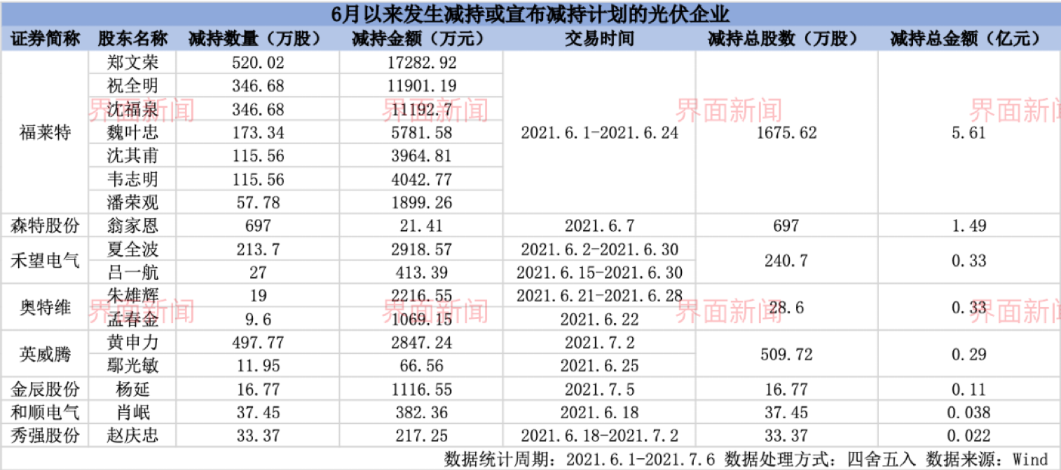 福莱特因此成为此轮遭减持份额最大的光伏上市公司。