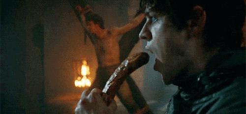 席恩可能是全剧受虐最多的角色,先是第二季,被自己人背叛,落入小剥皮之手,虐得体无完肤–砍掉脚趾和手指,牙齿被打掉,身上涂满排泄物。
