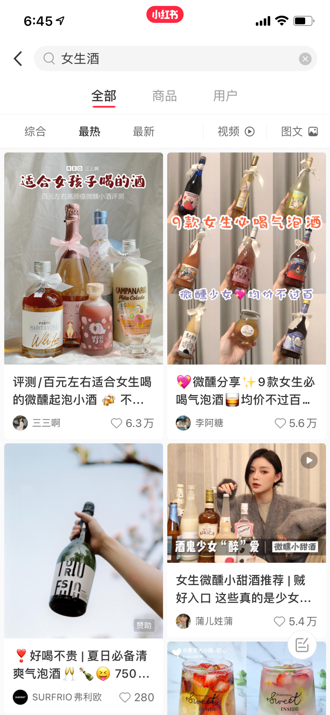 为了加强用户认知,很多低度酒新品牌选择高举高打的策略。低度酒从酒饮市场细分,也将消费者细分。在低度酒千亿市场规模中,女性是维持市场持续增长的中坚力量。在小红书上搜索“女生酒”,可以看到12万+篇相关笔记,都是品牌拿出钱做投放、砸排名、种草的内容。