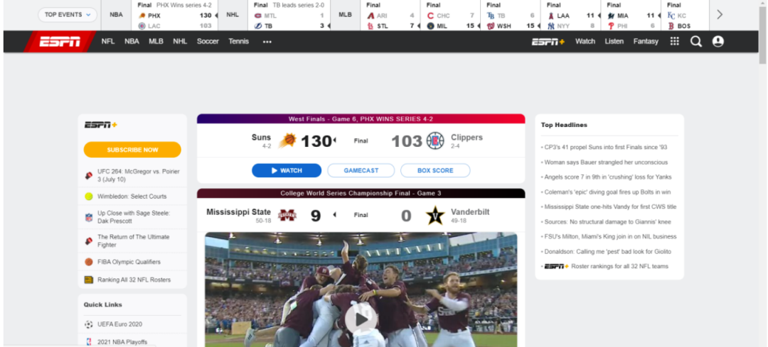 除了Disney+,早在1995年,迪士尼以190亿美元收购了ABC电视台,ESPN作为ABC的一部分也自然归到迪士尼名下。从2013年开始,ESPN就饱受用户流失的困扰,这也使得外界更加关注ESPN的一举一动。据估算,从2013年到2017年,ESPN的用户数已经从9900万下跌至8800万。