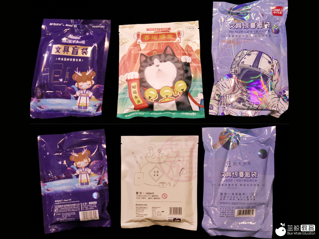 蓝鲸教育选择了两款淘宝热销的文具盲盒,结果发现,内部产品着实令人咋舌。