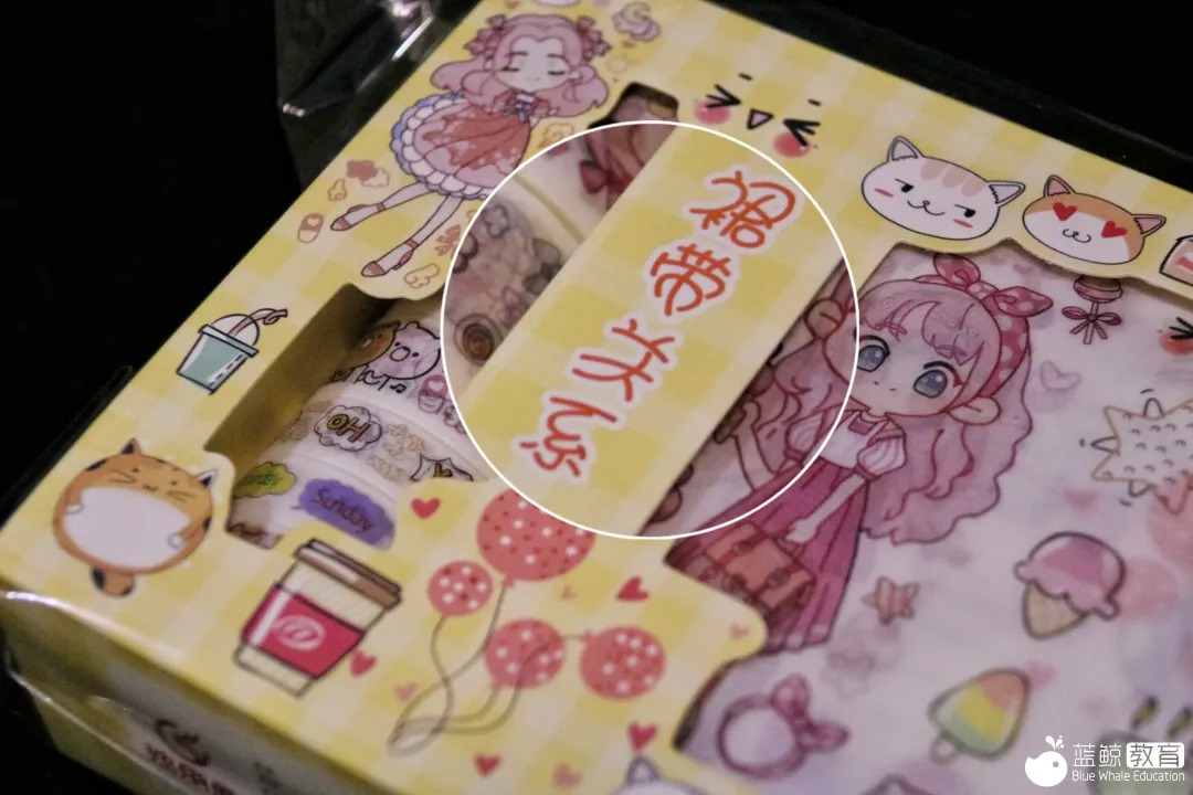 另外,喜欢手工的学生可能会更喜欢这款盲盒。盲盒中还有一套包含4个压花器、一把花纹剪刀的DIY工具套装,一个与信纸风格相同的纸胶带,以及一百张正方形彩纸。剪刀和彩纸的质量都很好,但是压花器有较大的缺陷——只能在纸张的固定边框位置压花,想要在纸张中间压花几乎不可能。