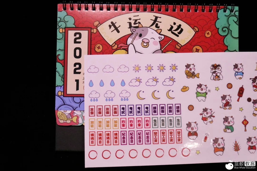 更令我们没想到的是,盲盒中还有一本2021年的台历。要知道,我们下单时已是6月,此时还将台历放入盲盒,有消耗积压库存之嫌。更重要的是,台历附赠的标记贴纸中,关于特殊日期的部分还包括“姨妈日”、“约会”等图标,多少有些不合适。