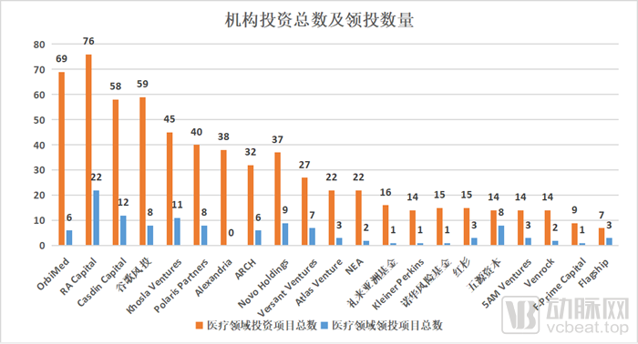 数家顶级投资机构近两年投资数据,资料来源动脉网数据库