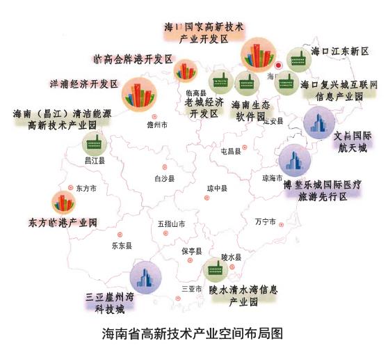 其中,“两区”即把海口国家高新技术产业开发区和洋浦经济开发区打造成“十四五”时期海南高新技术产业发展的“主平台”,聚焦强链补链进一步提升招商引资工作水平,培育壮大产业集群,着力提升数字经济、石油化工新材料和现代生物医药等产业的核心竞争力和辐射影响力;“三城”即文昌国际航天城、博鳌乐城国际医疗旅游先行区、三亚崖州湾科技城强调科技的引领作用,吸引国内外高端创新资源集聚;“六园”即海口江东新区、老城经济开发区、海南(昌江)清洁能源高新技术产业园三个综合性园区和海南生态软件园、海口复兴城互联网信息产业园、陵水清水湾信息产业园三个数字经 济园区进一步明确功能定位,优化功能布局,完善生产生活配套设施,推动生产要素、重大项目、骨干企业向园区聚集,提升单位面积投资强度、产值和税收,积极推进港产城融合发展。