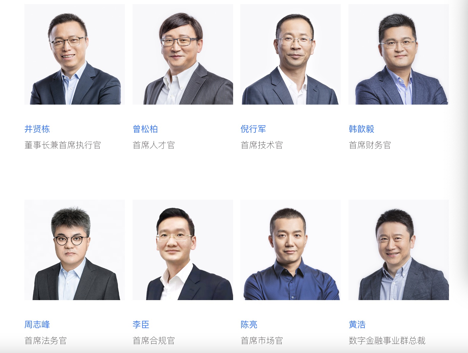 蚂蚁集团高级副总裁陈磊明、高级副总裁Douglas Feagin、副总裁芮雄文、副总裁邵文澜、副总裁张彧也未出现在官网披露的管理团队中。