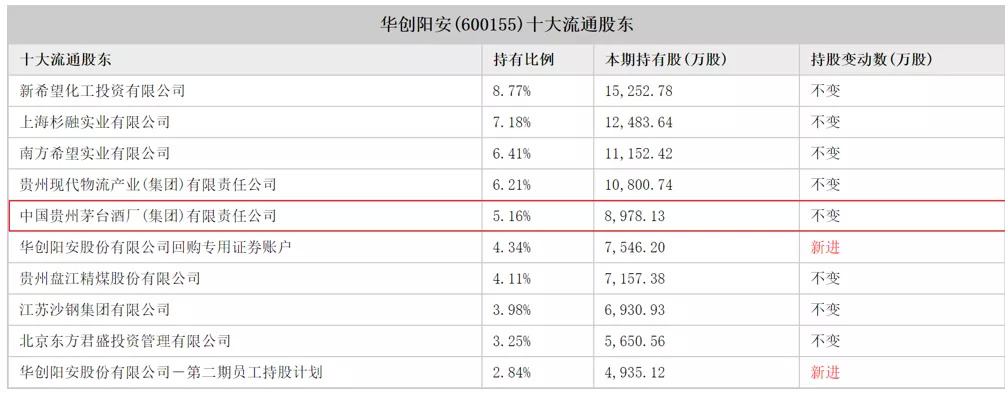 同时茅台集团还对保险证券业表现出了极大兴趣,2017年2月投资2亿元设立了华贵人寿,并以20%持股成为第一大股东。在同年3月又投资1.8亿元持股15%参与设立多彩财险。在证券行业,同样在2017年,茅台集团联手华康保险等多家公司,出资7.7亿元,占比38.5%,成立广东丝路证券。此外,茅台集团还出现在华创阳安前十大流通股东中,持股比例达5.16%。