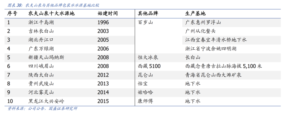 农夫山泉作为行业龙头,其获得的水源也只有10个。而像怡宝、娃哈哈、康师傅等品牌,都采用的是地下水。