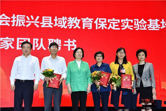 保定市委书记党晓龙、创新人才教育研究会会长刘彭芝共同为“创新人才教育研究会振兴县域教育保定实验基地”揭牌。保定市委书记党晓龙、代市长闫继红为刘彭芝颁发首席专家聘书,为李春林、王珉珠、罗滨颁发专家团队聘书。