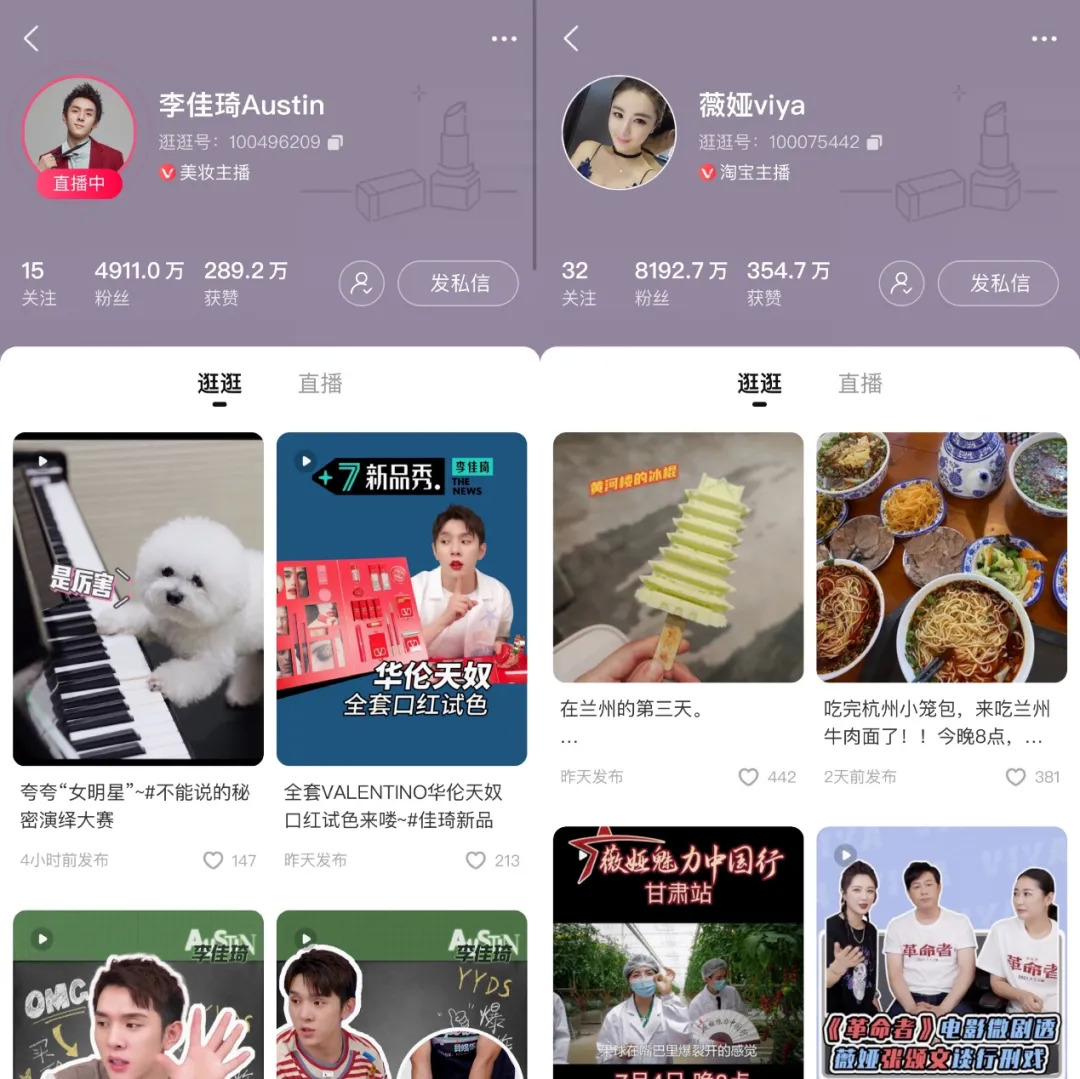 李佳琦、薇娅的逛逛页面