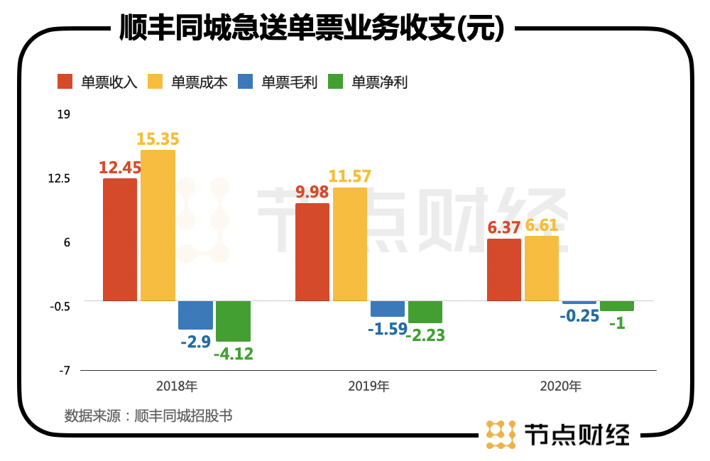 几天前,港交所披露,顺丰控股将会拆分出顺丰同城急送赴港上市。顺丰同城急送成立时间不长、在顺丰内部单独成长的时间也不长,而且最近3年,顺丰同城的净利润分别为-3.28亿元、-4.70亿元、-7.58亿元,3年合计亏损15.56亿元,关键是,其毛利也一直处于亏损状态。
