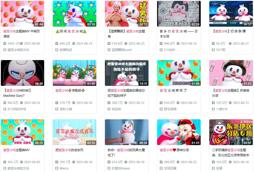 根据不同国家、不同曲风等,《蜜雪冰城甜蜜蜜》被改编为上百种版本,播放量破百万甚至高达500万、600万的作品比比皆是。自发参与传播与二创的视频创作者们,也成为这场引爆全网的裂变式营销的主力之一。