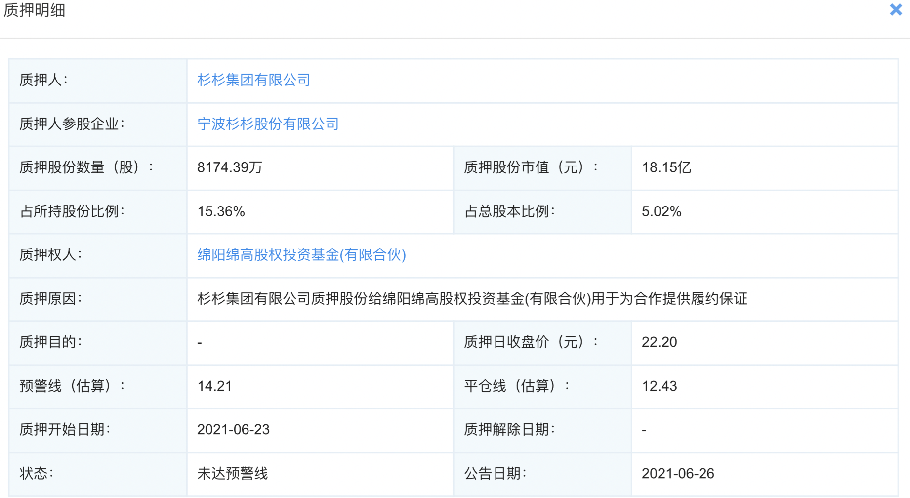 非公开股票募资尚未落地。6月21日,杉杉股份公告,苏州杉金拟在绵阳市设立项目公司投资建设偏光片绵阳生产基地项目,计划靠注册资本自筹资金投资总额50亿元,其中固定资产投资金额约35亿元,流动资金约15亿元,计划于年末前开工年产5000万平方米偏光片生产线项目,建设两条偏光片生产线(2250mm和1490mm各1条)及相关设施。工商信息显示,杉杉股份质押市值18.15亿元的股份给绵阳国资委旗下绵阳绵高股权投资基金(有限合伙)。