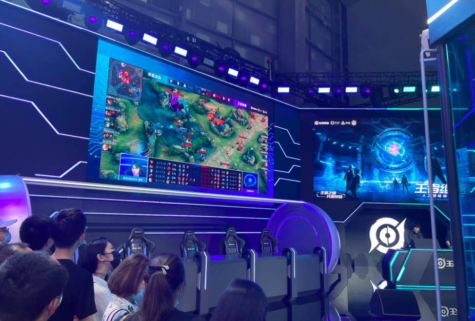 据现场工作人员介绍,此次上场的绝悟AI已在后台调整至“人”的水平,与职业电竞选手间的比赛虽然看起来难舍难分,但AI取胜其实在工作人员的预测当中。