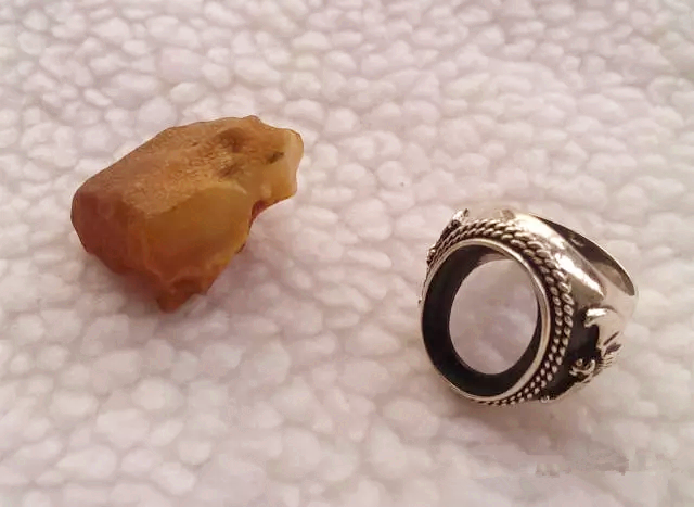 根据选择的戒托选择材料,还是根据做好的戒面选择戒托,这个问题就跟先有蛋还是先有鸡一样,说不清楚,个人看个人的习惯,我是先准备戒托,之后选择蜜蜡材料进行磨制,这样把握大一些。