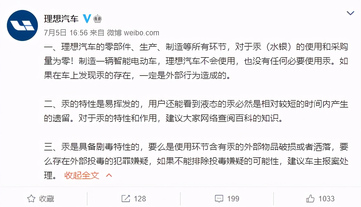 值得一提的是,水银门事件本身最初并未引起太多关注,正如理想汽车在回应时所言,一是水银具有易挥发性,液态水银绝不可能是理想汽车出厂时自带;二来水银有剧毒,汽车生产过程中不会使用液态汞。因此,理想汽车自身原因导致座椅缝隙出现水银,可能性并不大。