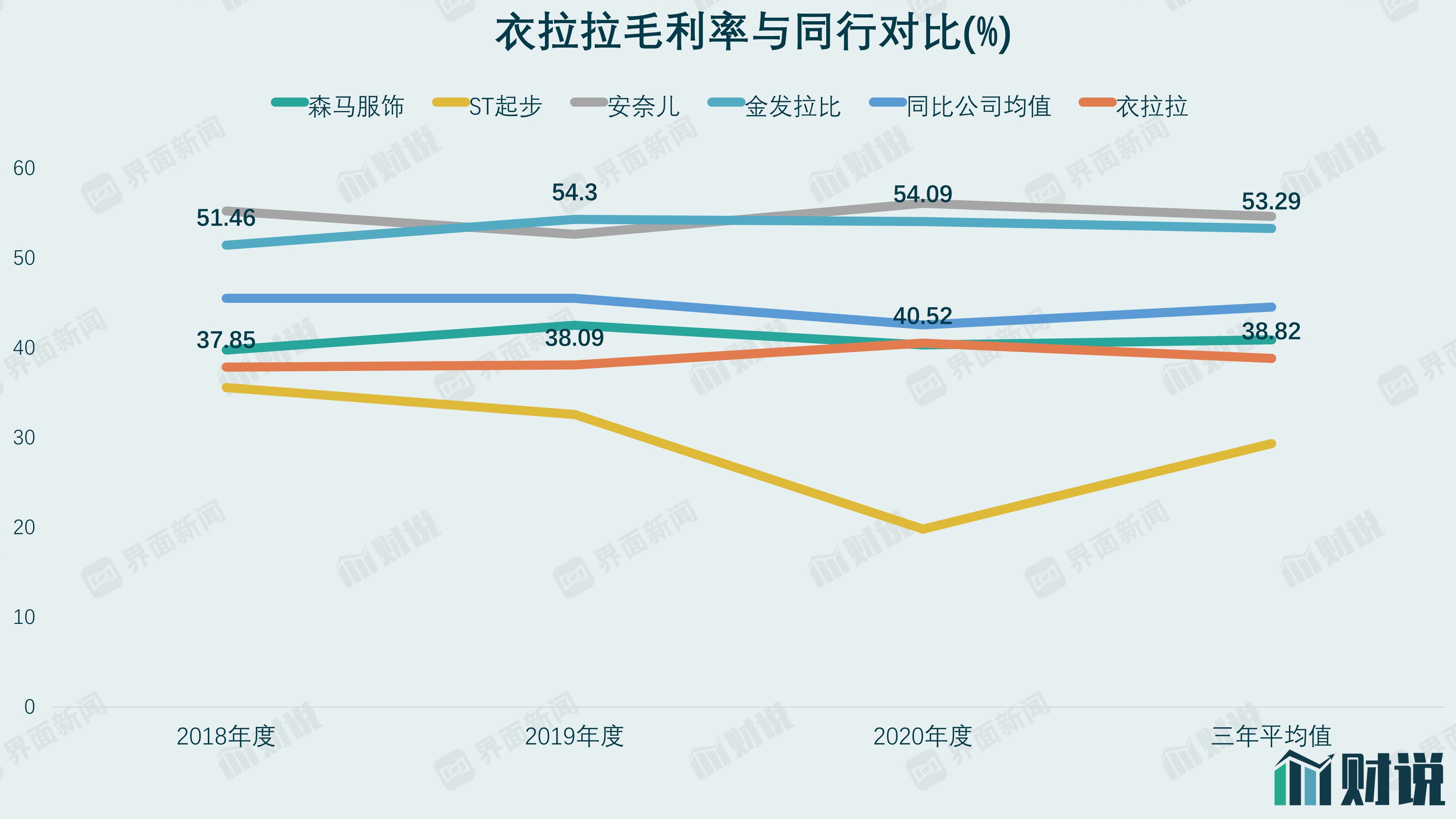 衣拉拉毛利并不突出,甚至低于同行。2018年-2020年,衣拉拉毛利率平均值为38.82%。与此同时,森马服饰旗下的巴拉巴拉、ST起步旗下的ABCkids、安奈儿、金发拉比四家可比公司均值为44.54%,衣拉拉明显低于同行。衣拉拉在招股说明书解释,公司毛利率略低,主要由于产品集中在棉质童装,与可比公司童装细分品类差异所致。森马服饰的巴拉巴拉以儿童外出服为主,安奈儿以儿童外套、裤类及上衣等外出服为主,金发拉比以婴幼儿服饰棉品及婴幼儿用品为主,起步股份以童鞋、童装及儿童配饰为主。