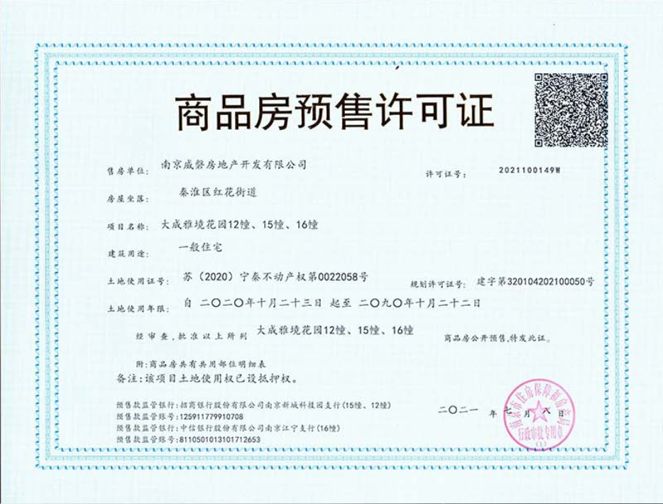7月8日,根据南京市住房保障和房产局官网显示,金地大成雅境新领12、15、16号楼销许,7月9日开启报名。