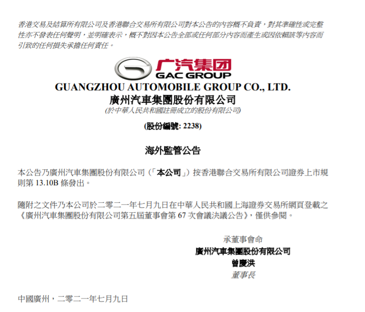 7月9日消息,广汽集团发布公告称,同意全资子公司广汽埃安新能源汽车有限公司与华为(AH8车型)项目的实施。根据公司与华为技术有限公司签署的战略合作协议,双方将基于广汽GEP3.0底盘平台、华为CCA(计算与通信架构)构建的新一代智能汽车数字平台,搭载华为全栈智能汽车解决方案,联合定义、共同开发,共同打造面向未来的一系列智能汽车。