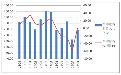 随后发布的2016年第一季度财报显示,归属于母公司所有者的净利润为31.6亿元,较上年同期增13.85%;营业收入为250.98亿元,较上年同期增0.02%。公司当季营收实现小幅正增长,在一定层面体现了界面新闻分析的渠道去库存已经有所成效。