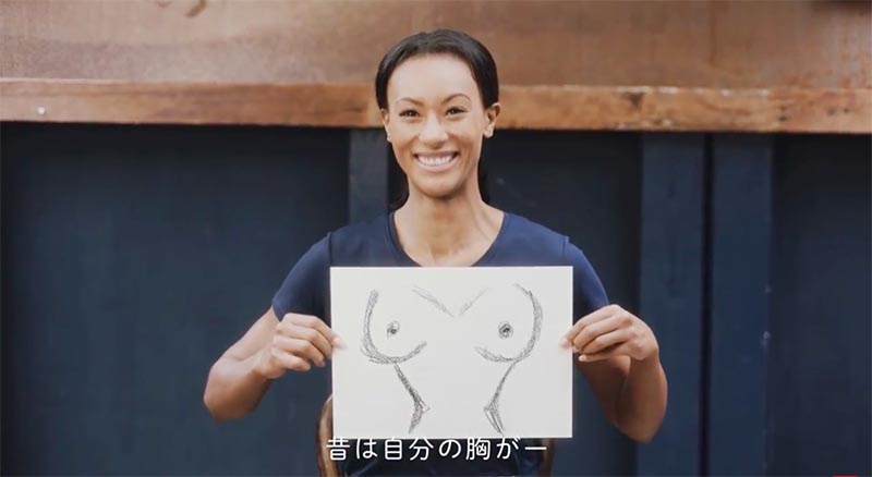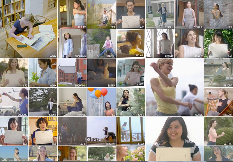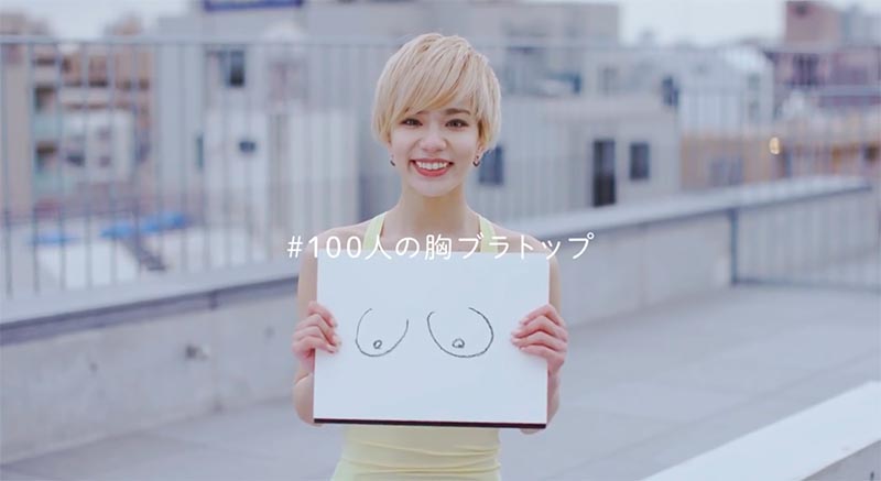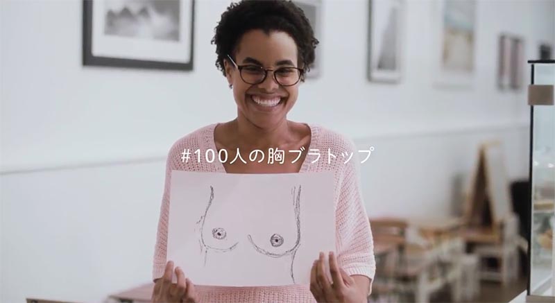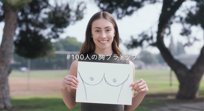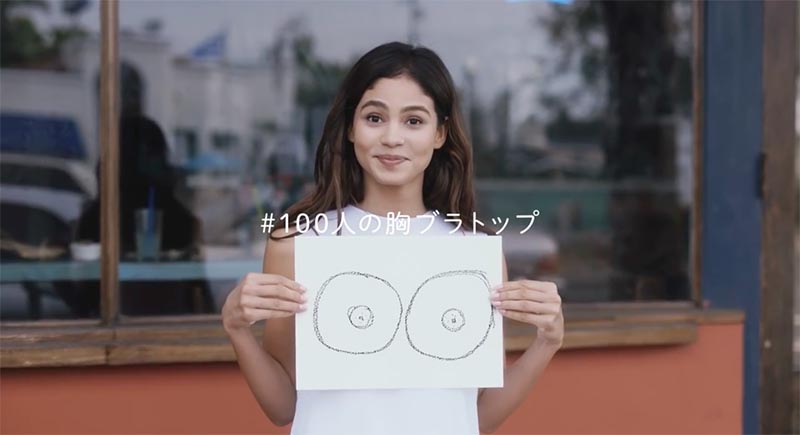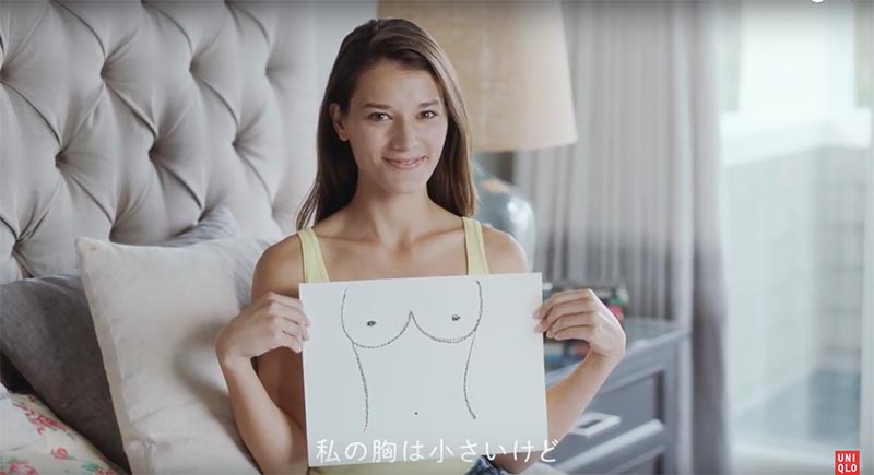 为了展现胸是形状有千万种,优衣库还请来自全球各地的女性们将自己胸的形状画在纸上,放在胸前,用一种避免了色情的方式展示了自己的胸。