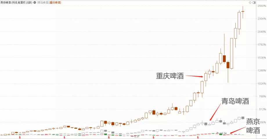 置入嘉士伯资产的重庆啤酒,最近三个月股价已经翻倍,并且从2016年的7.35元/股(前复权),上涨到近日最高的207元/股(前复权),涨幅达2700%!青岛啤酒股价也从2016年最低时的23.7元/股(前复权)上涨至最高118.11元/股(前复权),最近三个月涨幅约30%。