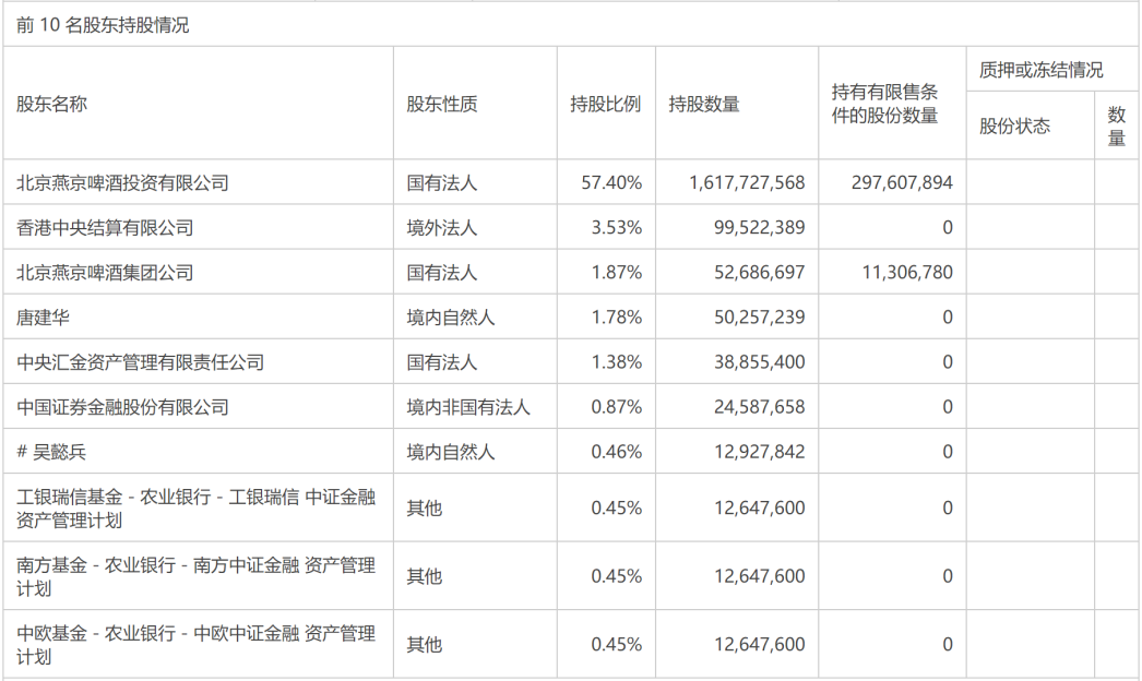 而就在燕京啤酒主打年轻化、中高端的策略有所起效的时候,昔日坚守的明星股东却弃之而去。